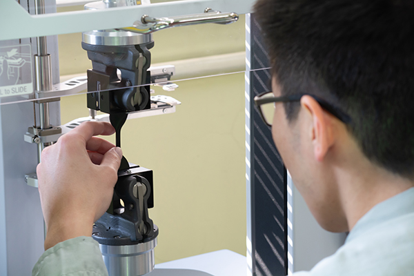 お客様から寄せられる多様な要望を起点に、配合設計、試作、評価を重ねながら、用途や使用条件に適した開発・改良を行っています。実際の使用環境や求められる性能を踏まえ、品質と機能の両立を追求した素材づくりに取り組んでいます。